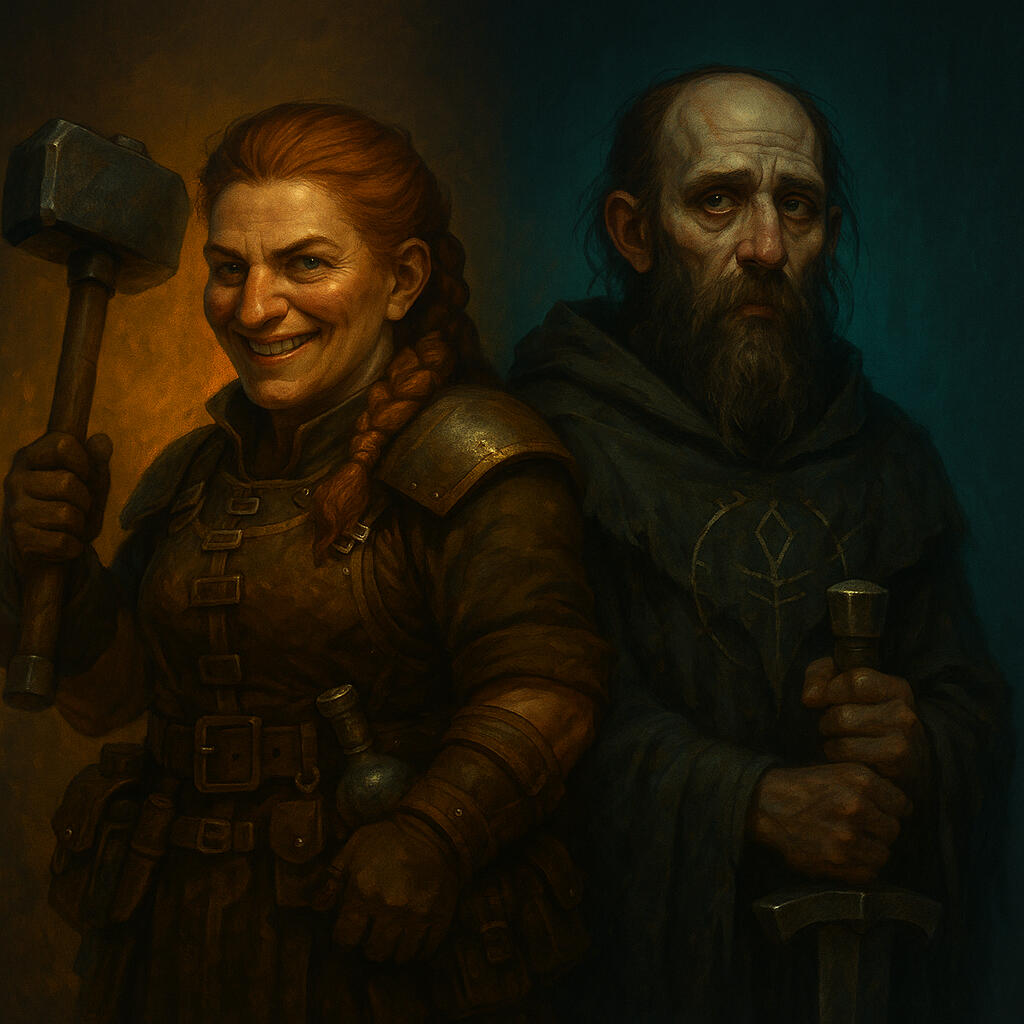 Once prisoners, now warlords in a broken wing of Chromeria. Reva is an artisan obsessed with explosive inventions; Thurin is a cleric of broken gods. They raid portals for supplies, kill on sight, and seem disturbingly happy with their new power.May know secrets about navigation, control discs, and escape.Definitely not stable. Possibly fun.